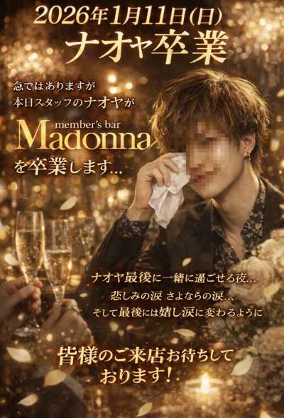 急ではありますが、本日スタッフの【ナオヤ】がMadonnaを卒業します...