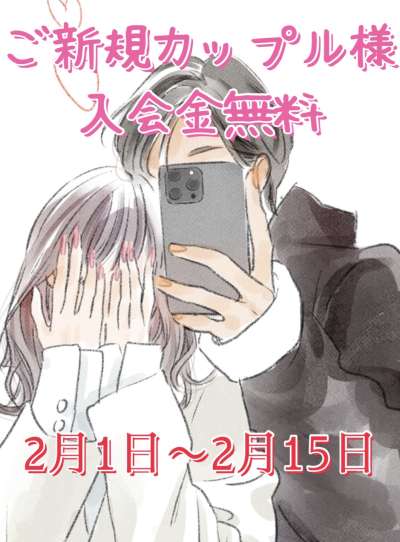 なんと‼️今だけ、2月1日から2月15日まで、ご新規カップル様の入会金が無料となっております🙋
